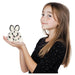 Introducing the Palm Pals Usagi Sea Bunny soft toy, the latest addition to Aurora's popular Palm Pals Collection. This adorable sea bunny is a white and black-coloured plush. It's filled with beans and perfectly fits into your palm. It's great for small cuddling and makes a wonderful gift for any occasion! Palm Pals are cute, touchable soft toys made with high-quality materials. They are part of an Eco-Friendly initiative, featuring inner fibre fill and beans made from recycled plastic. The hangtags are recyclable, and the cloth labels are made from recycled materials.