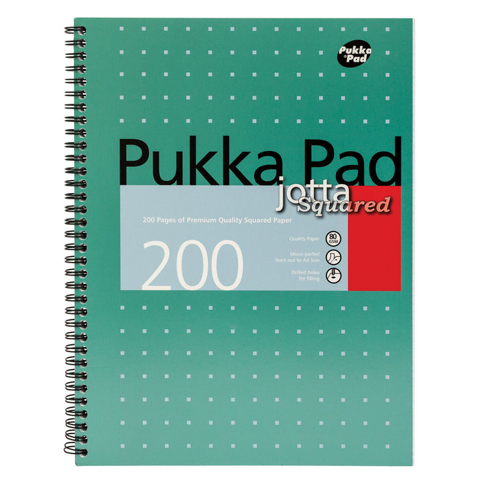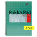 Wirebound, allows pages to fold back and lay flat for ease of use. High quality white 80gsm paper. 200 pages (100 sheets) per pad. Page perforated 14mm in, torn-out page will be narrower. Metallic look cover. Pack of 3.