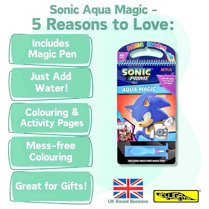 More than just a colouring book: The Sonic Prime Aqua Magic set is a versatile treasure: From the mess-free Magic Pen to the thrilling world of Sonic, it's the ultimate magic water colouring book for young adventurers and Sonic the Hedgehog enthusiasts. Aqua Magic allows children to paint and colour with water, revealing stunning images without any mess or stains.