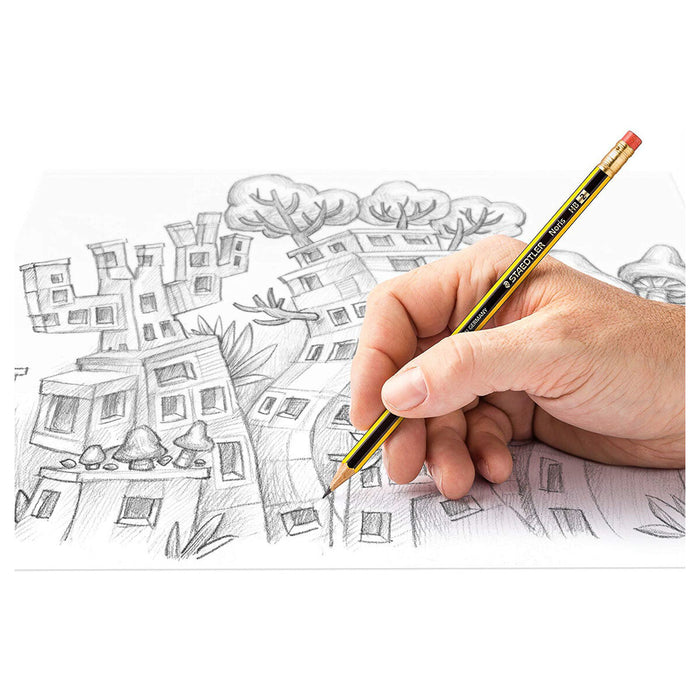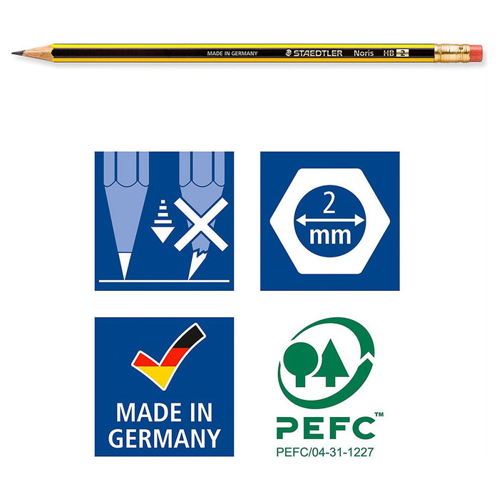 • Staedtler Noris HB Pencil is instantly recognisable from its distinctive yellow and black stripes.