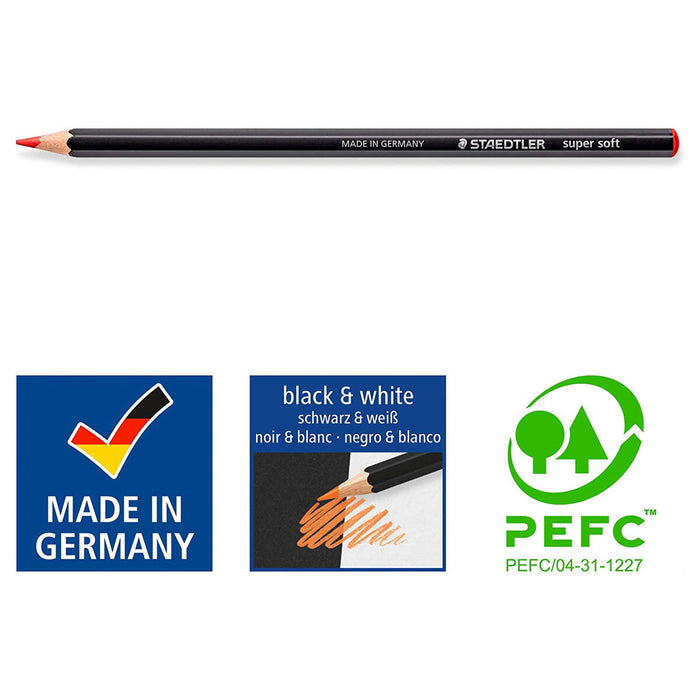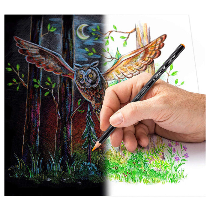With these Staedtler 24 Super Soft Coloured Pencils you can create beautiful art on both light and dark paper. The 24 super soft lead pencils are part of the design journey range and produce impressively bright colours. Great for hobby artists.