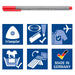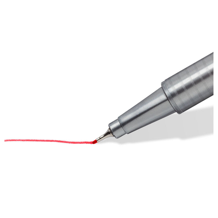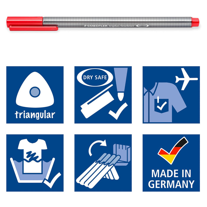The ergonomic triangular barrel of Staedtler Triplus Fineliner Pens allow for effortless, fatigue-free writing and colouring. The pens have water based ink and produce an approximate line width of 0.3mm. Also includes a stand-up Staedtler box for easy access.