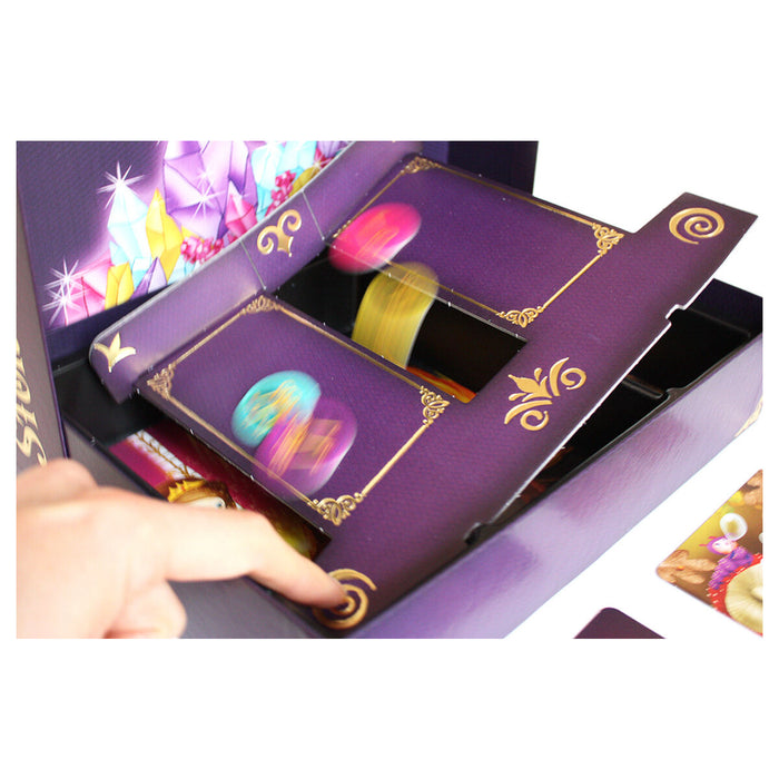 Draw two cards and start a new story, while the others guess which card you are going to choose by placing a key token in the Story Chest. Each cards can take the story into thousands of different directions, from a witch's cauldron to an enchanted forest and back, so let your imagination take flight.