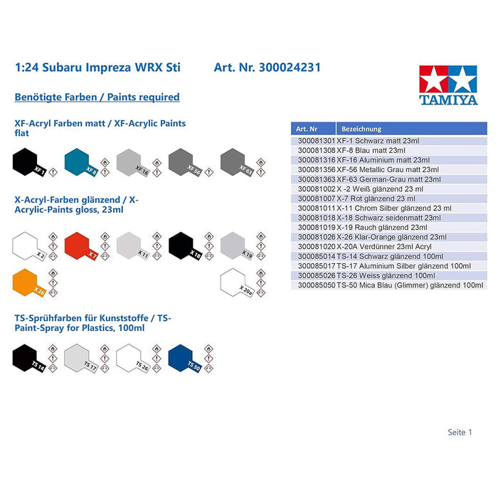 • Tamiya Subaru Impreza WRX STi 1:24 model kit.