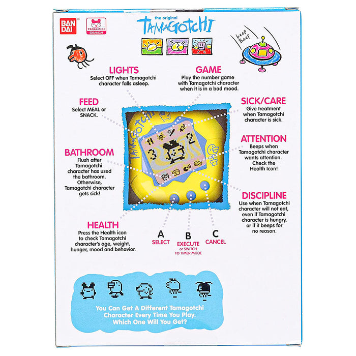 The Original Tamagotchi pet is back in Sahara style! Feed it, turn lights on/off, play with it, give it medicine, flush after it's used the bathroom, check it's health and discipline your Tamagotchi if he bothers you. Includes a character game where you have to guess which way the Tamagotchi will move next. Raise your Tamagotchi from egg to child to adult. How you take care of it will decide which of the 7 adults you get. Comes with a chain to take your Tamagotchi with you everywhere.