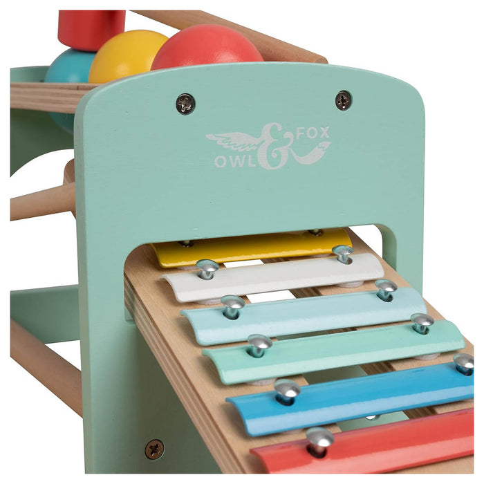 The Owl & Fox wooden Xylophone Bench has been designed to complement your home environment, allowing maximum play fun whilst looking great. Introduce your little one to the joys of music with this wooden Xylophone Bench. With this set, your little musician can use the hammer to tap the balls onto the keys below learn how to play notes and develop their musical and hand-eye coordination skills. It is perfect for a fun-filled afternoon of music! Inspires imaginative play and allows musical skills to flourish!